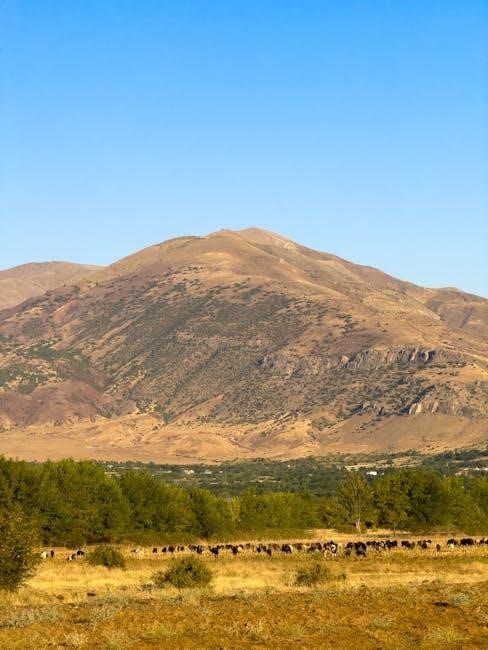 Farm animals are cornerstone of agriculture‚ providing essential resources like food‚ labor‚ and companionship. Cows‚ chickens‚ pigs‚ and horses are among the most common species‚ contributing to food production and sustaining rural economies. These animals are raised for meat‚ dairy‚ eggs‚ and wool‚ shaping the global food supply. Beyond sustenance‚ they play a cultural role‚ featuring in traditions‚ idioms‚ and festivals. Educational resources‚ such as PDF guides and worksheets‚ help learners explore their significance. Farm animals also support biodiversity and ecosystem balance‚ making them vital for sustainable farming practices. Their importance extends to education‚ with materials like flashcards and videos teaching kids about their sounds‚ habitats‚ and uses. Overall‚ farm animals are indispensable to human livelihood and cultural heritage.