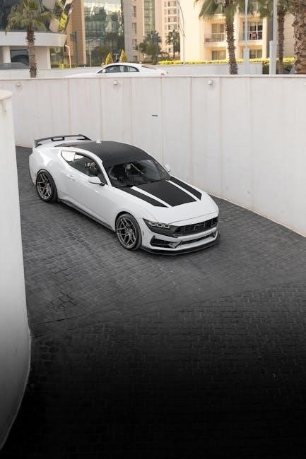The Mustang Dark Horse represents the pinnacle of performance with its manual transmission, offering a thrilling driving experience. Equipped with a powerful 500hp V8 Coyote engine, this model delivers exceptional acceleration and responsiveness. The six-speed manual gearbox enhances driver engagement, making it a favorite among enthusiasts. Priced around $76,000, the Dark Horse is a top-tier option for those seeking a high-performance pony car. Its exclusivity and potent capabilities make it a standout choice, blending power with precision. The manual transmission in the Dark Horse underscores Ford’s commitment to catering to driving purists who value the connection between driver and machine.